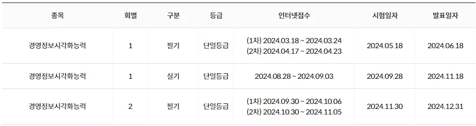 필기 : 경영정보 일반, 데이터 해석 및 활용, 경영정보시각화 디자인 (객관식 총 60문항)