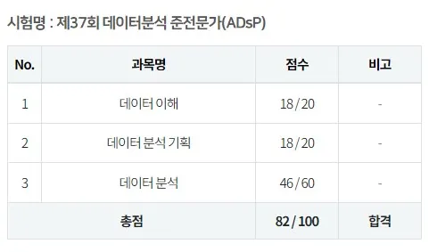 (TMI : 제37회 범위 외 출제 3문제는 모두 다 ADP에만 시험 범위로 포함되는 비정형 데이터 분석에 관련된 문제였습니다. 시험장에서 비정형 데이터 분석 문제가 3문제 연속으로 나오길래 멍해졌습니다...)